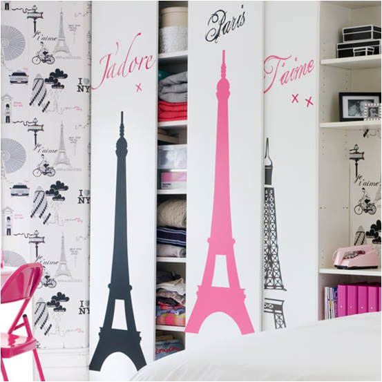 | Paris even made it to the closet doors.. If you want that look there are decals you can purchase to go on your closet doors. |